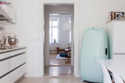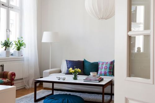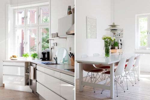 Acabo de descubrir otra agencia con fotos de casas realmente maravillosas: Bogalet, y me he quedado con esta que tiene un suelo de madera maravilloso que llama a pisarlo descalzo, con las paredes blancas y detalles de color. Mmmmmm.