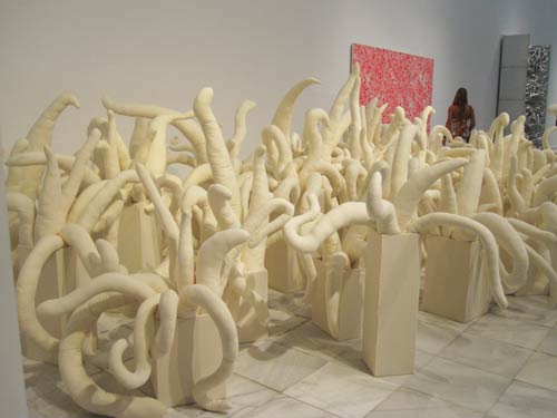 Gracias al post de Encarna, de Inspiración hecha a mano me he animado a ir al Reina Sofía a ver la exposición de Yayoi Kusama y tengo que decir que me ha sorprendido. No conocía a esta artista japonesa, y me ha encantado todo, en especial sus ultimas obras. Me habría quedado con toda la pared que componen esos cuadros de colores tan llamativos. Si tenéis oportunidad no os la perdáis. (Los tentáculos me vuelven loca!) 😉