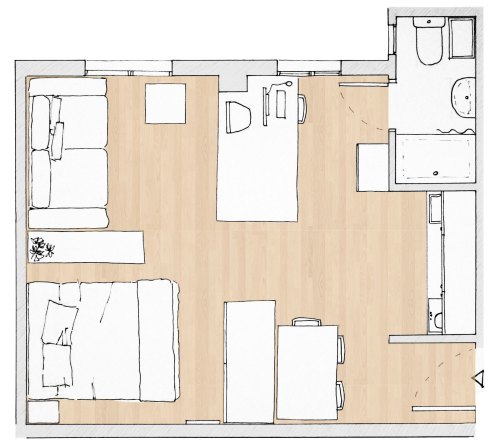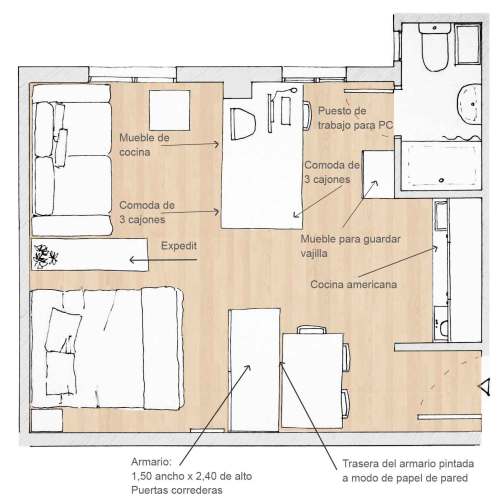 No queríamos nada de sofá cama, y necesitábamos sitio para trabajar con ordenadores, así que eso junto con el mayor espacio para guardar fueron los requisitos. (Además de montar la casa en 3 días y con el mínimo presupuesto)
