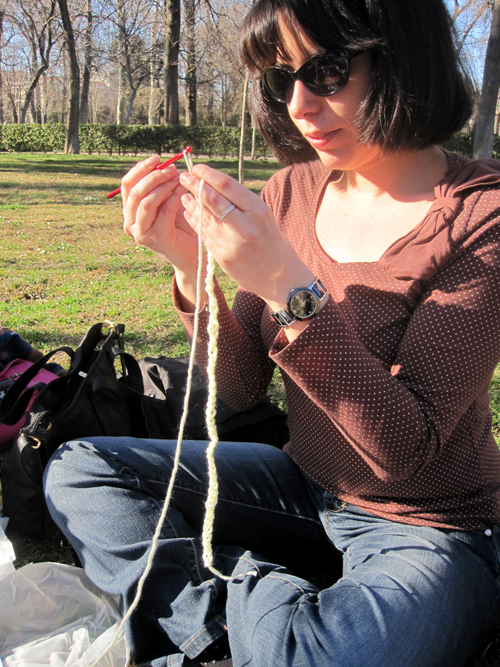 Nos citamos en la entrada de la puerta de Alcalá ganchillo en mano para reconocernos, y gracias al super ganchillo de Victoria pude reconocerla. 🙂