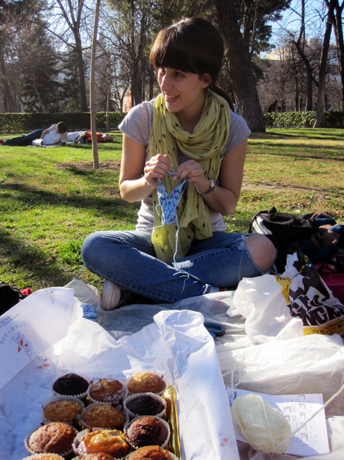 Fuimos 4, ya que algunas no pudieron venir, y después de buscar un sitio agradable donde poder sacar todo nuestro material pasamos una tarde super agradable y entretenida entre lanas y muffins que nos trajo amablemente Adriana. Gracias!