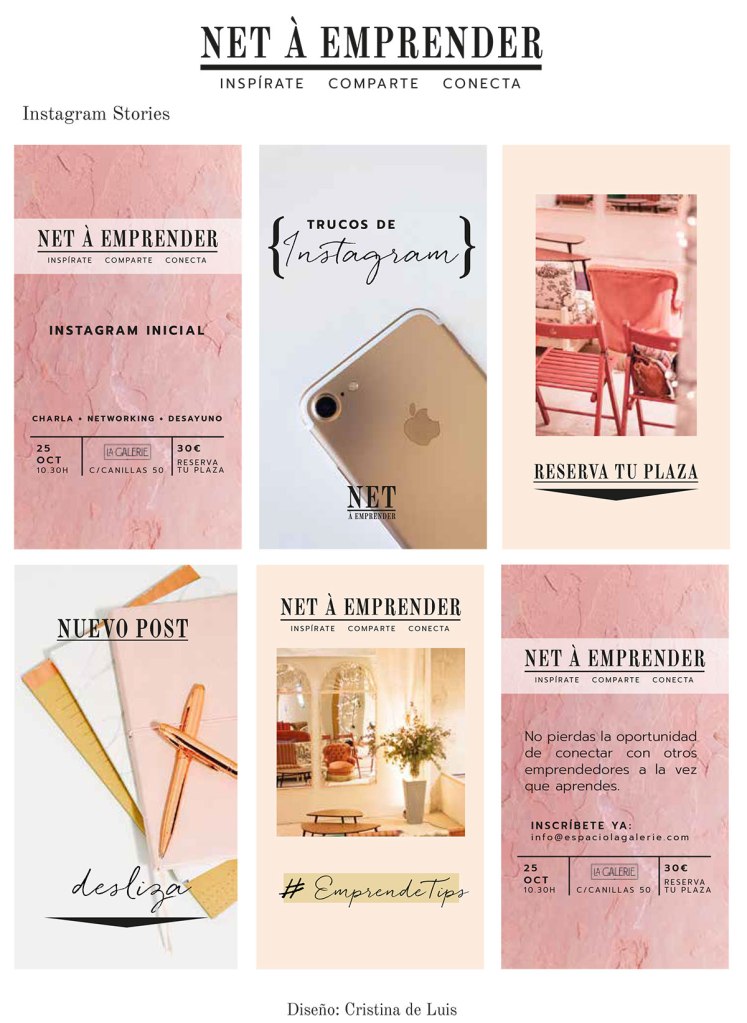 Ya conocía a María desde hacía muchos años, allá en los inicios de NiceParty coincidimos y la seguía de cerca en las redes sociales. Cuando me propuso hacer el diseño de la identidad visual para el nuevo perfil de Instagram de Net a Emprender le dije que sí al instante.