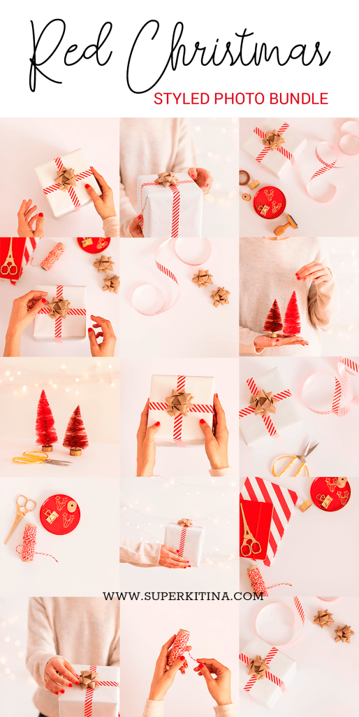 El primero es el pack de Navidad en rojo, un pack de fotos con tonos claros en las que el rojo es protagonista: Paquetes de navidad, detalles de escritorio, manos preparando paquetes, adornos… Perfecto para tiendas on-line, servicios, negocios femeninos, bloggers…