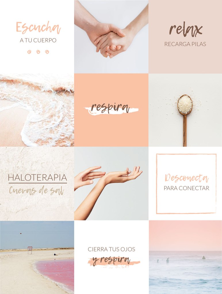 Seleccionamos una paleta de colores que transmitiera tranquilidad, relax, limpieza, naturalidad. Jugamos con el logo, lo adaptamos a esta nueva estética y adaptamos todos los elementos del perfil: Imagen principal, destacados para stories, plantillas…