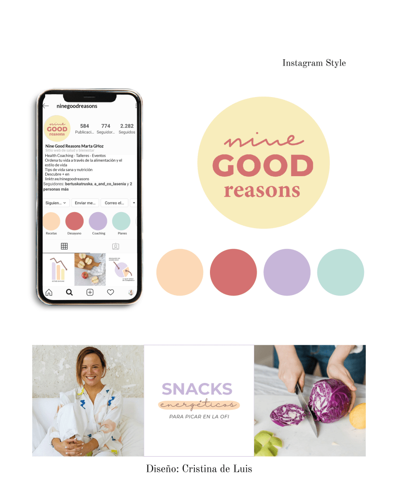 ¡Hola! Estoy súper contenta de poder compartir hoy contigo uno de los últimos diseños de Instagram que he hecho en estos meses. A Marta de Nine Good Reasons la conocí en una charla genial que dio en los encuentros de Net a Emprender, y cuando me contactó para darle un aire nuevo a su diseño de Instagram me hizo una ilusión tremenda.