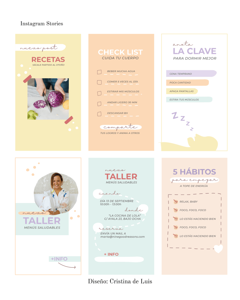 «Es muy fácil trabajar con Cristina. Primero trabajamos juntas las gráficas de Instagram, para renovar la imagen, y me facilitó los recursos de la forma que necesitaba para poder seguir utilizándolos por mi cuenta.