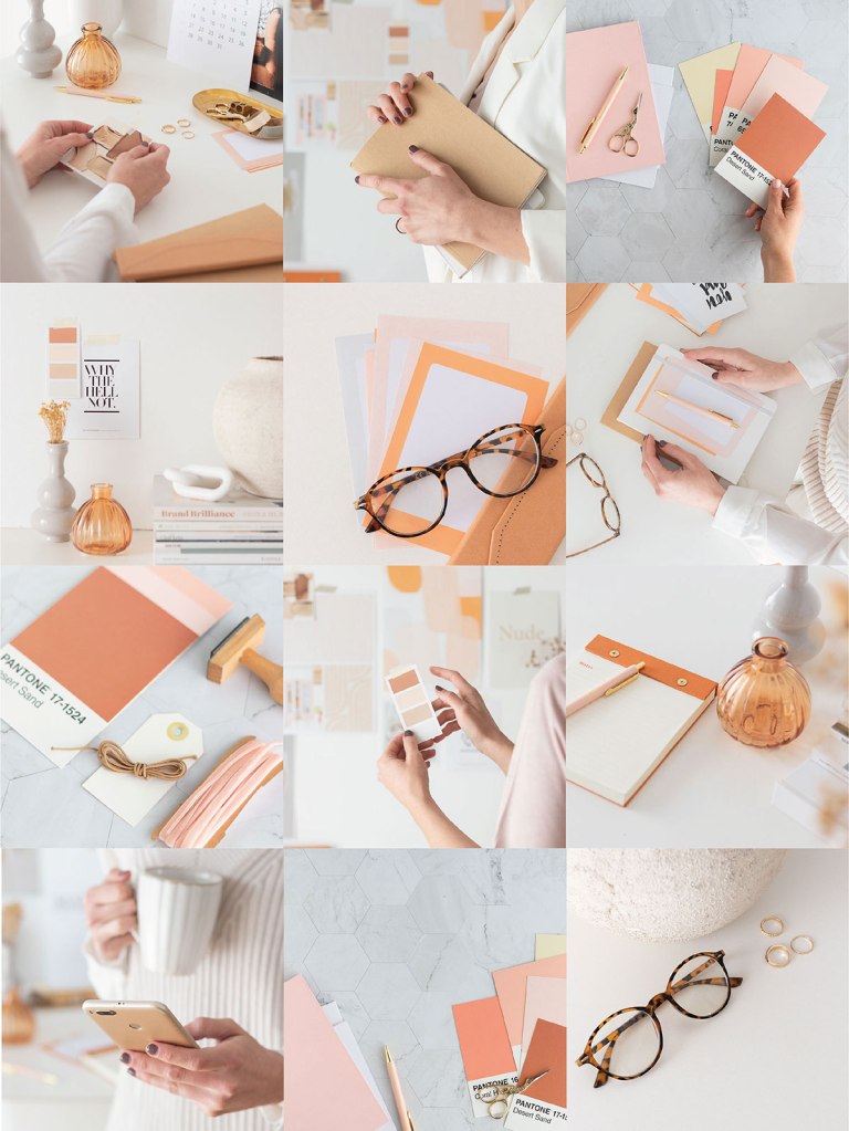He elegido una paleta de color en tonos rosados y tierras, muy actual, con toques en dorado que me chiflan. Un punto sencillo pero elegante para vestir tu web con fotos profesionales.